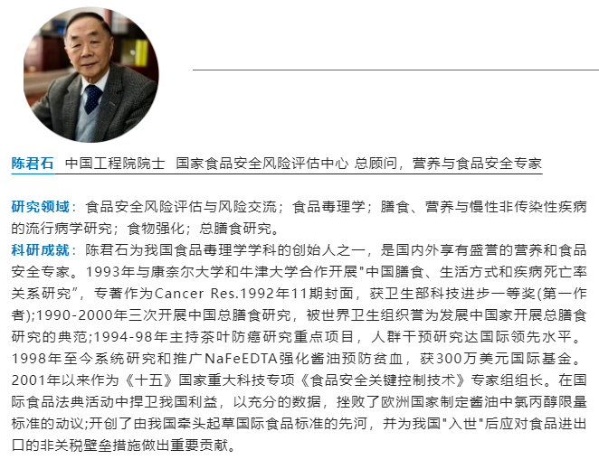 陈君石 中国工程院院士 国家食品安全风险评估中心 总顾问