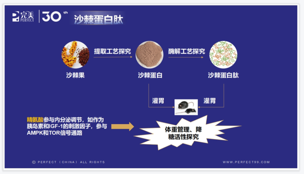 沙棘属胡颓子科沙棘属,是一种非豆科固氮植物。沙棘多肽是蛋白的水解产物,越来越多的研究证明,沙棘多肽具有降血糖、抗氧化、抗菌、抗炎、提高免疫活性等功效[2]。